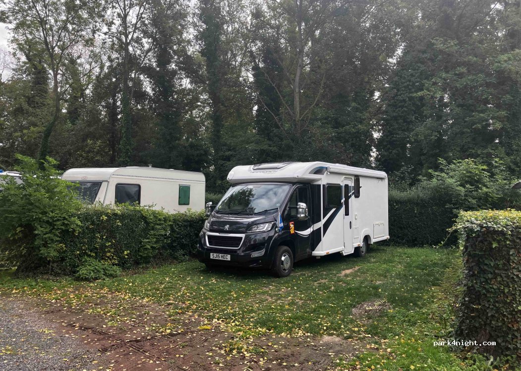 Pitches untidy but large. We got stared at by the people on the long term pitches as we headed for the touring pitches. But quiet, showers and toilets were clean (take your own loo roll!) and only a few minutes off the A26 and an hour from Eurotunnel. Cash only.