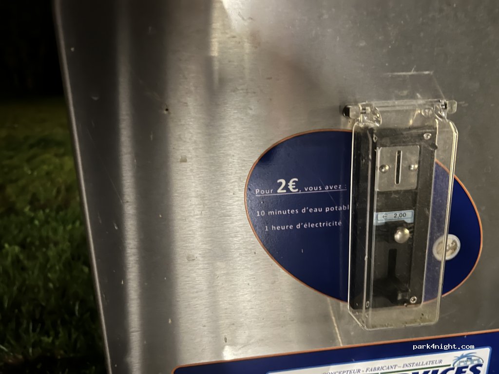 aire de service,sur parking Intermarché, manque de robinet pour l'eau, obligé de se servir d'une pince...sinon vous perdez 2€. caissettes pour WC bouchée donc des "soi-disant " camping-caristes ont déversé dans les eaux usées, c'est très sale. dommage !! j'ai mis 2 étoiles car l'aire a le mérite d'être là Merci à la commune ou à Intermarché.