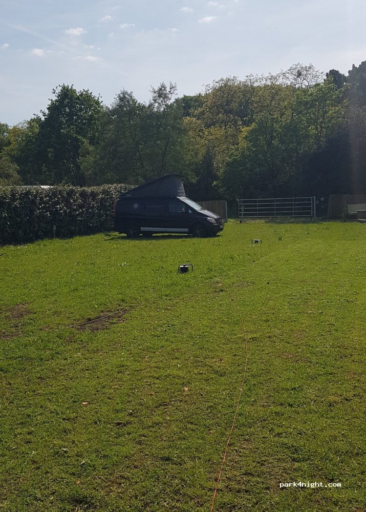 Prima plek. Vlakke ondergrond in het gras, mooi verzorgd en onderhouden terrein. Terrein was gesloten, maar na telefonisch contact kregen we de code van het hek en konden we zelf een plek uitzoeken. Het terrein bevindt zich 80meter vanaf de doorgaande weg, het eerste hek aan de rechterkant. Het is een smal en onverhard pad ernaar toe Je rijdt er makkelijk voorbij en keren is geen optie.