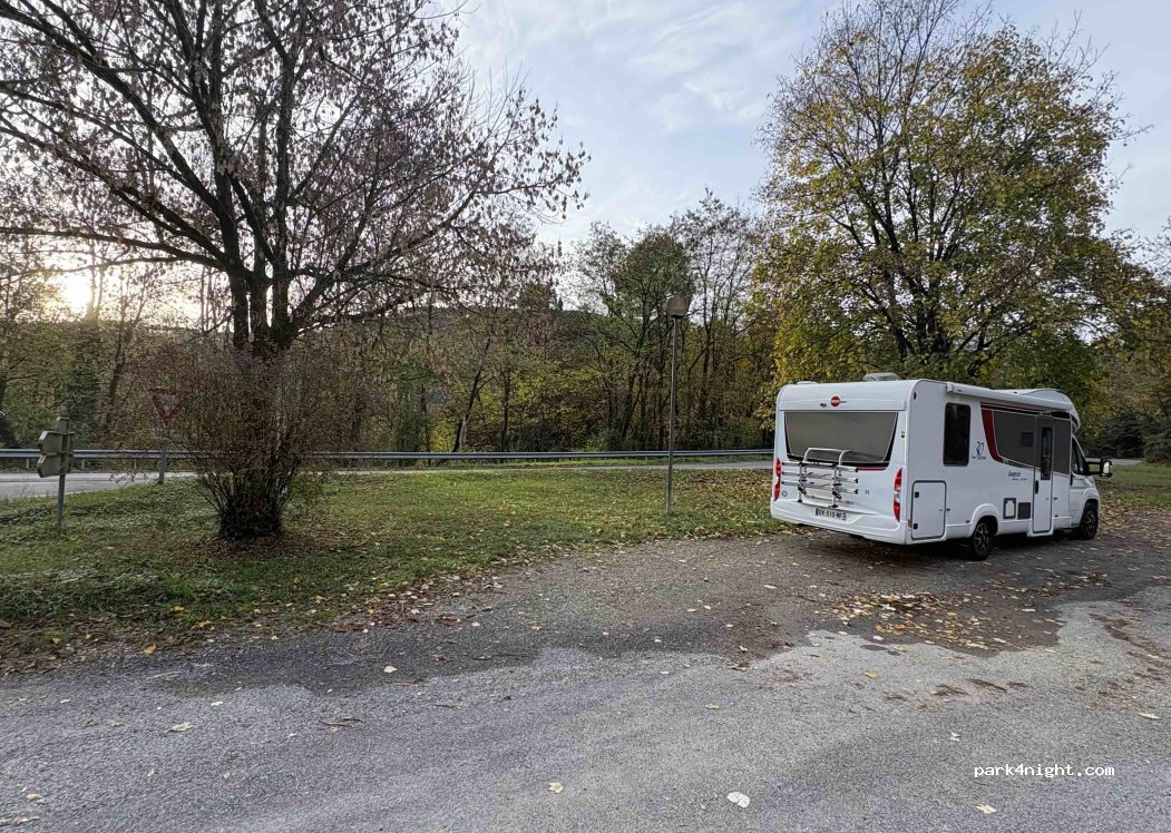 Free parking tolerated at night at a locality La Devèze, shaded parking for 10 pitches