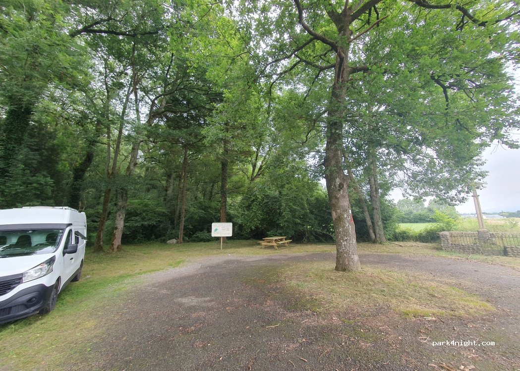 Petit parking en bordure de route avec banc de pique-nique. Beaucoup d'ombre.
