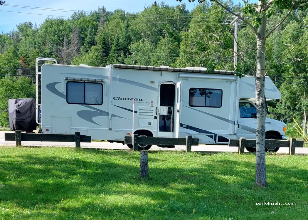 Halte routiere sur le bord du fleuve avec belle plage de sable au bord de la route 138... la ville de baie trinité permet au véhicule autonome de passé un nuit... gardez ce belle endroit propre.