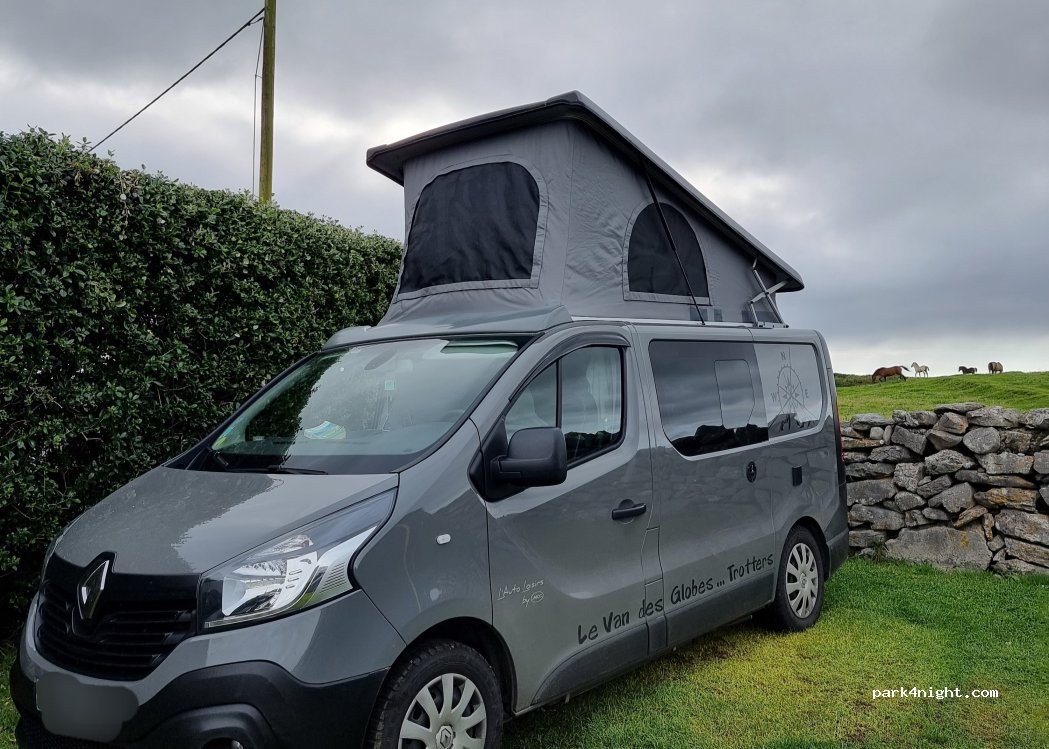 Arrivés tardivement, le propriétaire nous a trouvé une place à 44 € pour 1 fourgon aménagé, 3 adultes, 1 enfant, avec électricité + 9€ pour une machine et un sèche linge. Le sèche linge ne sèche pas! Emplacement très restreint. Nous sommes partis tôt à pieds pour les falaises de Moher environ 4h (aller-retour). Point fort : 1 food truc qui sert des chocolats chauds tops (prendre les marshmallows).