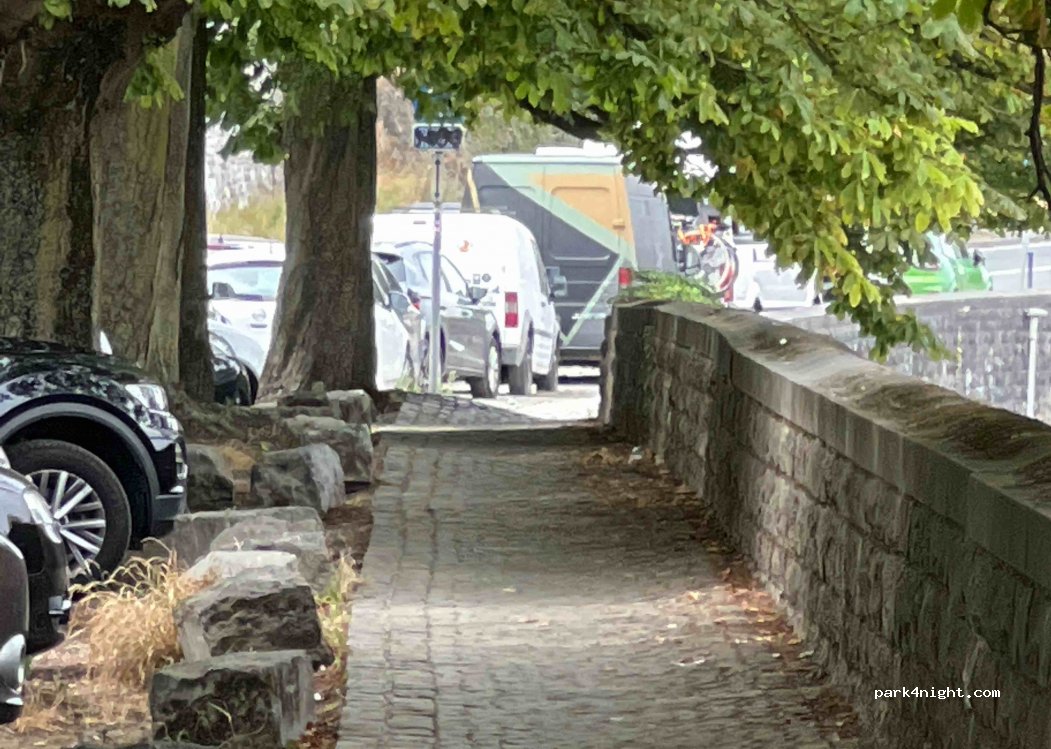 Gebührenpflichtiges Parken für maximal 3 Stunden ohne Höhenbegrenzung am Straßenrand für eine begrenzte Anzahl von Fahrzeugen (ca. 8).