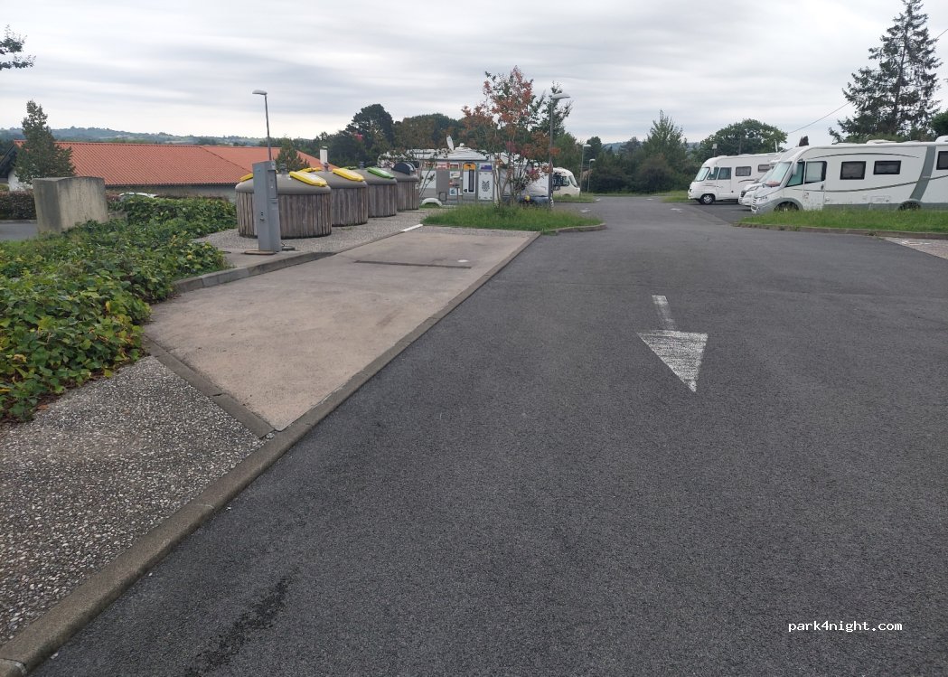 bof air bien simple bitume sans ombre l'avantage un magasin netto à 400 mètres le centre ville est bien curistes vu les tarifs pratiqués enfin nous avons payé 15 euros.