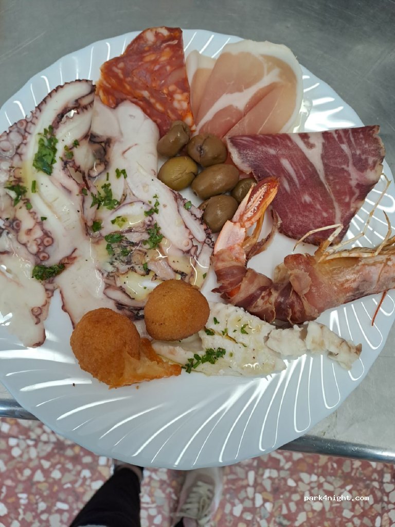area sosta perfetta, molto spaziosa con tutto il necessario vi è anche una pizzeria con forno a legna, gestori molto disponibili ed attenti i punti dolenti sono l'acqua per il carico che sembra essere di pozzo e filtrata, la spiaggia è appena fuori l'area ma è molto risicata punto di forza la vicinanza con il paese ottimo per una passeggiata