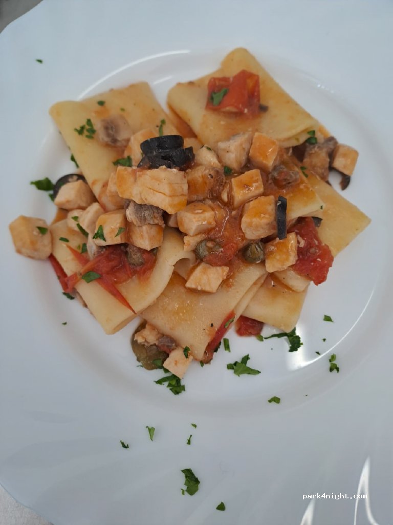The 3-hectare area is fenced and illuminated, with comfortable pitches for campers, caravans, and tents. All pitches are equipped with 6-amp electrical hookups, drinking water, and free WiFi throughout. The bar, kitchen, and pizzeria are open. The local cuisine is excellent, with seafood dishes taking center stage, which I assure you are exquisite.