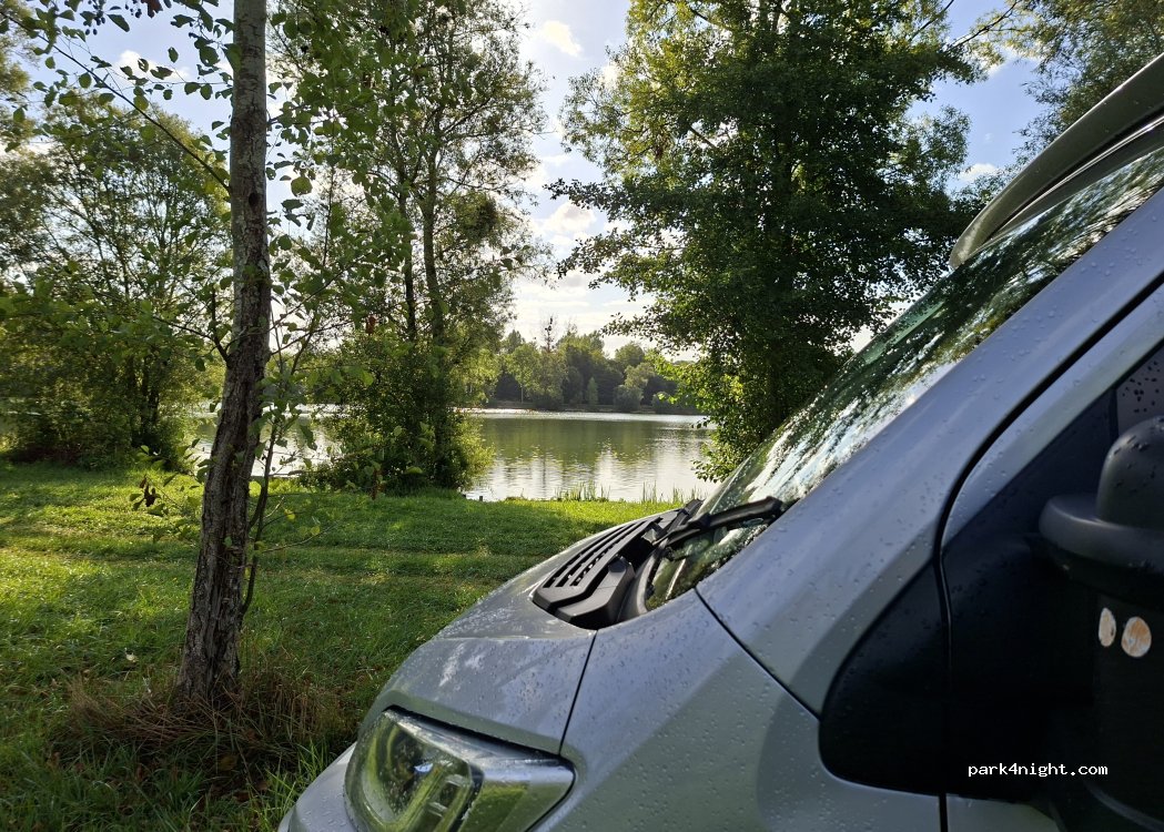 I can only agree:It's a lovely place to stop over. Bakeries in Muÿ de l'Aisne are great, good dog walking options.No fishermen on the lake, but as other comments say: don't park right on the lakeside: these sections are for the fishermen. they paid for a licence, and so have a right to access their spot. Thank you to the local Commune. I hope people treat it with respect and it can stay open.