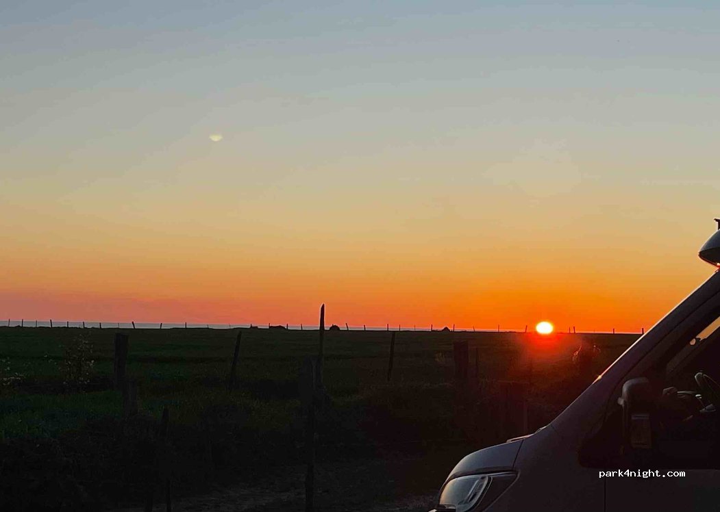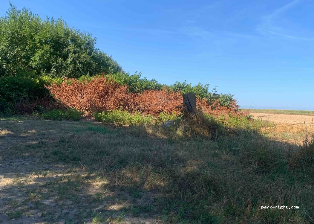 Emplacement très calme . Nous avons passée la nuit en tente de toit . Vu sur champs. Et mer au loin. Nous reviendrons.