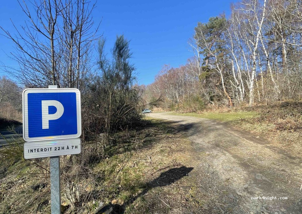 Parking en terre sans service, calme. Ne pas prendre la première entrée sauf si 4x4. Très pratique pour nuit avant Vulcania ou Lemptegy.