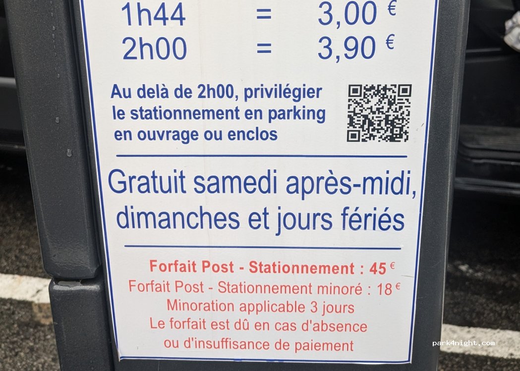 Idéalement situé pour visiter la vieille ville qui se situe juste en face du parking. 4h de stationnement, 3€80.