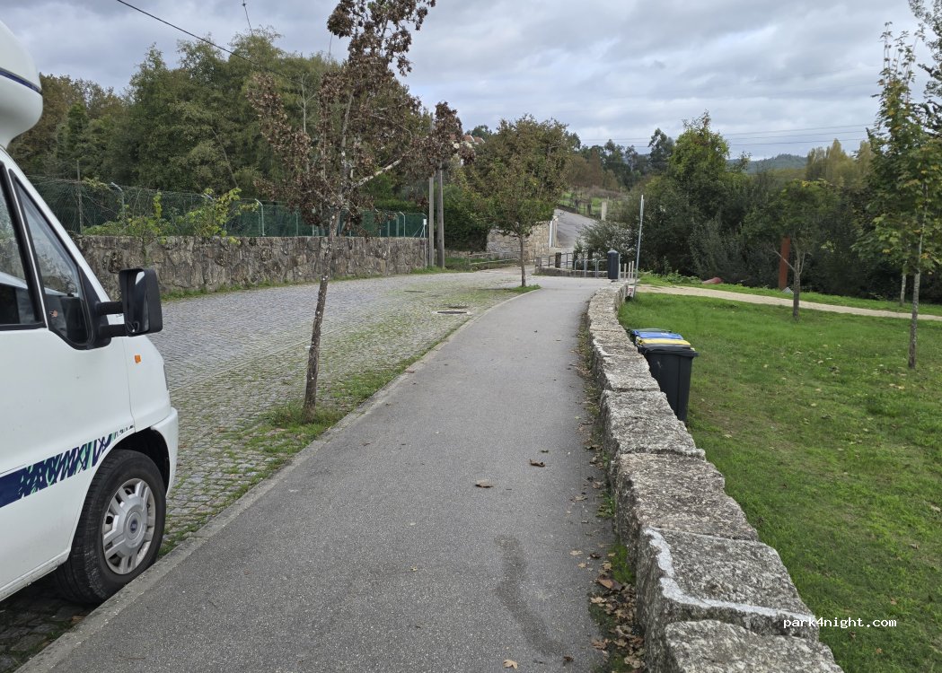 Picnic area with table, barbecue, soccer field, volleyball court, in surrounding of CALDAS DAS TAIPAS (or only TAIPAS) small city, with thermal facilities. Swimming possible in the Ave river beach. Maybe too busy in Friday summertime evenings.