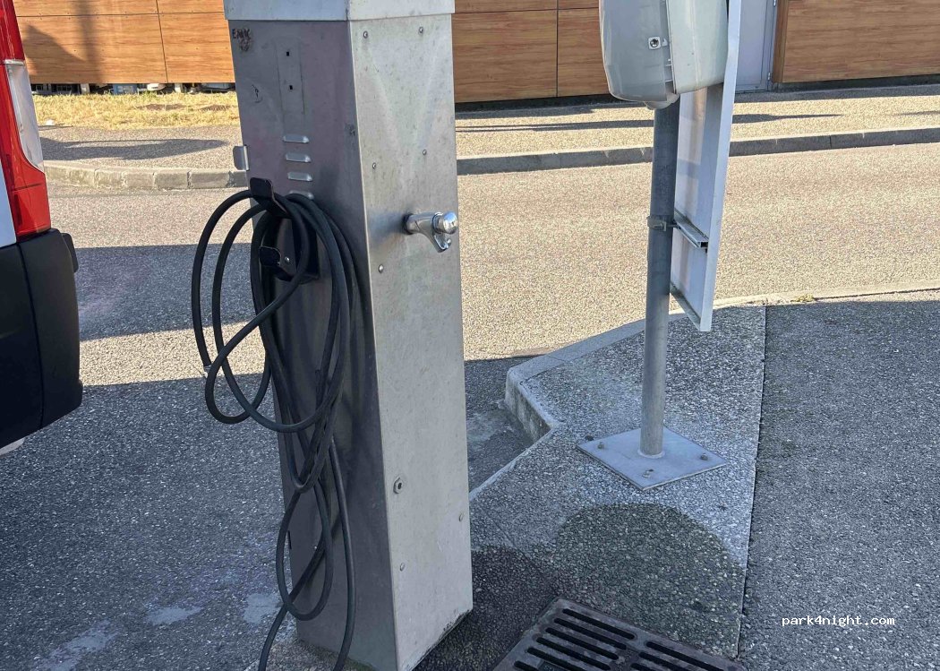 Aire de service gratuite. Eau potable, eaux noires, eaux grises.