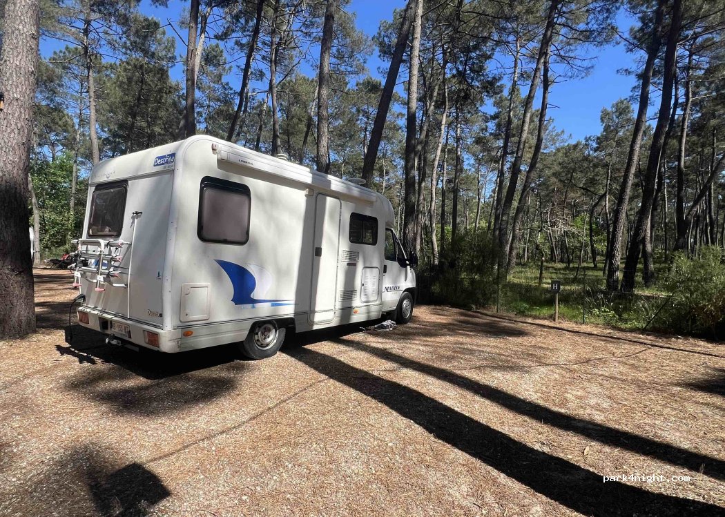 Belle aire dans les pins, 10 euros avec services et électricité et le wifi (sans code) pas très cher. Les emplacements sont assez grand. Le seul point noir, on capte la télé assez difficilement.