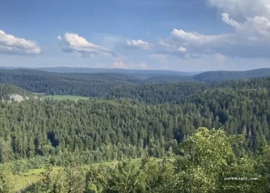 At the bottom of a forest road, a small plain surrounded by the beautiful Jura trees, absolute calm you can even hear the animals around you, old hiking departure point to explore, a real change of scenery Don't forget to bring your rubbish back with you! Narrow rocky road 4×4, van and small van only no CC Lots of other small spots along this road.