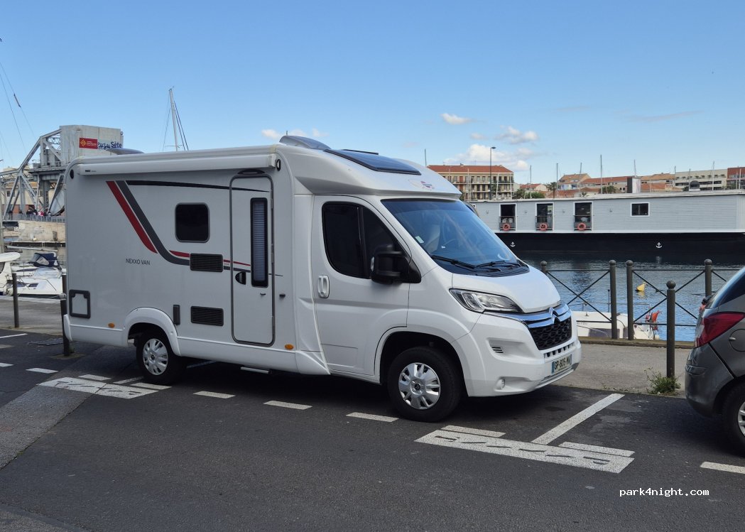 Parking payant longue durée, maximum 72 heures payant mais facile à garer, au bord du port de Sète nous y avons passé la nuit