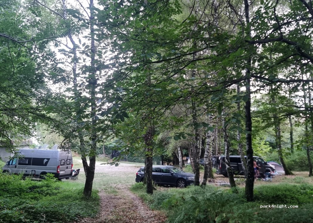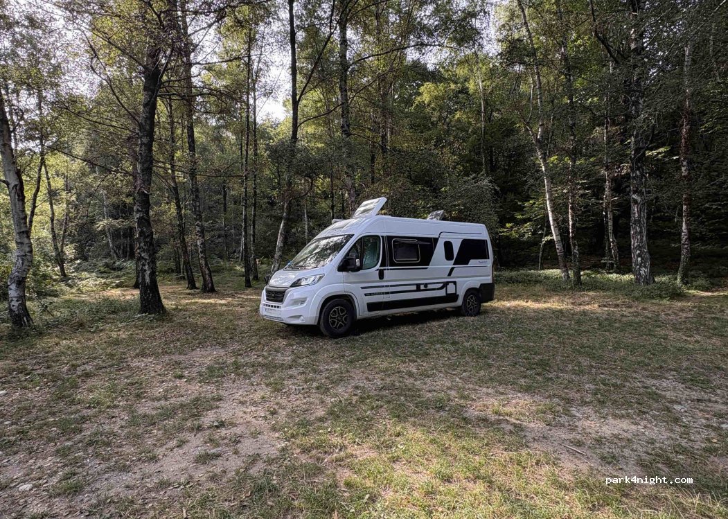 Vaste parking type clairière de forêt très vaste et calme (on a zappé les photos, désolé). De la place pour au moins trois ou quatre véhicules (voire cinq).