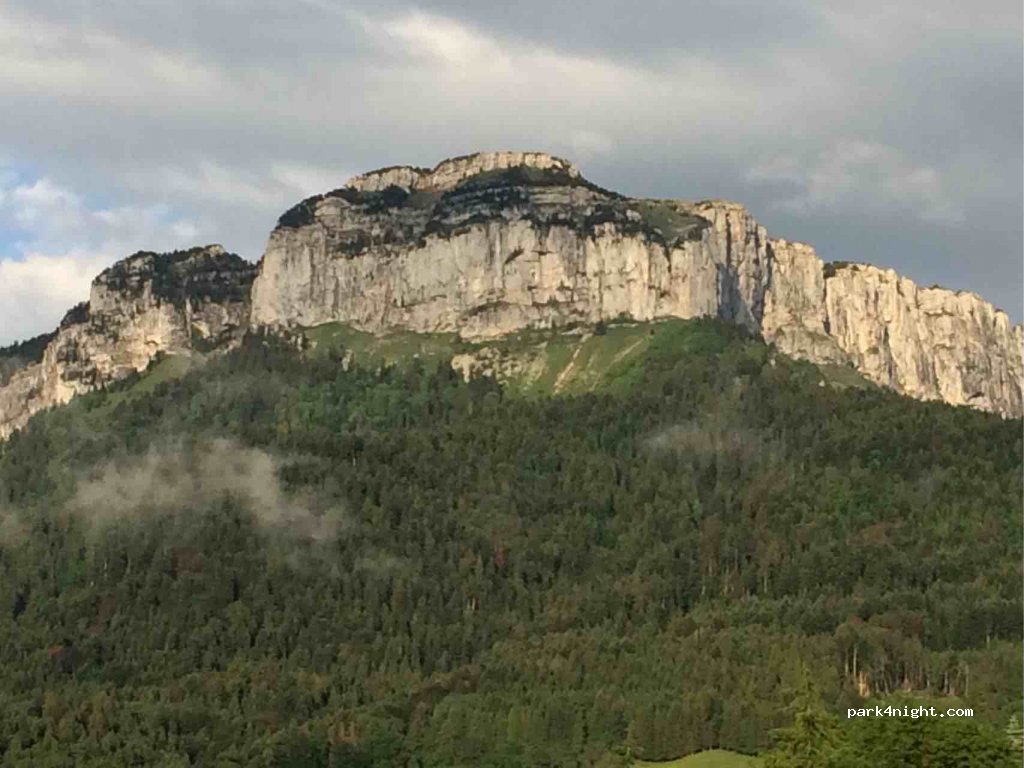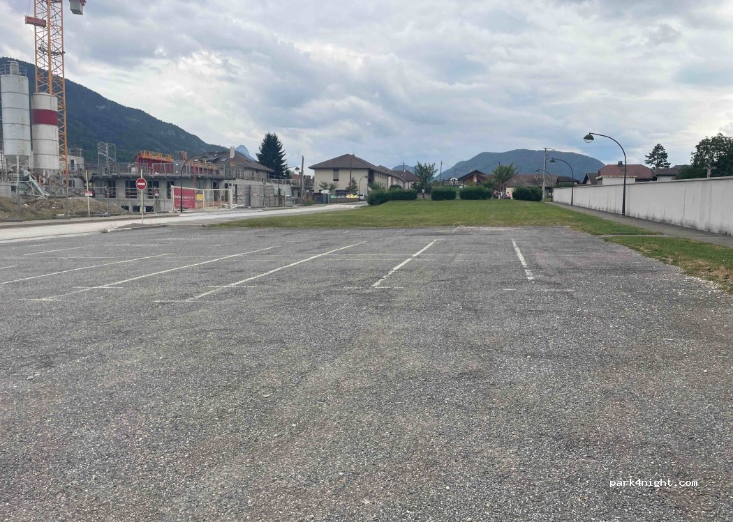 Parking simple et efficace! un magnifique coucher de soleil de l'autre côté du parmelan. Travaux en cours mais en rien gênant pour dormir! Boulangerie à 700m. carrefour market boucherie pharmacie...