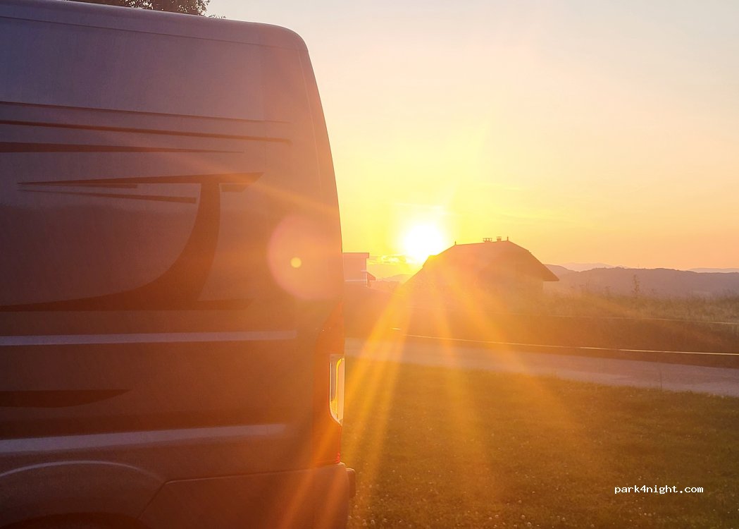 Parking calme et vue sympa, nous avons passé la soirée et la nuit sans aucun problème. En semaine, les parents conduisent les enfants à l'école et se stationnent sur le parking, mais mis à part les cris des enfants, c'est plutôt assez calme.