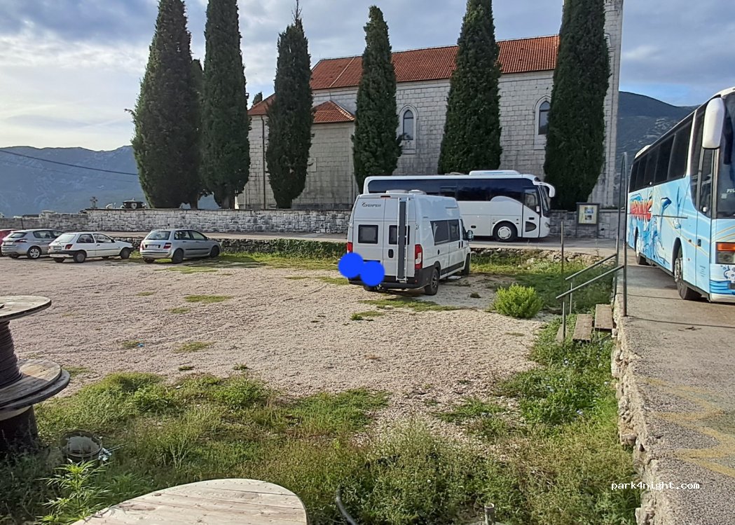 We spent one night and morning with young children. They can quite safely play in the parking lot (local children do it too, actually) because there is not much traffic. The road itself is busier. Supermarket across the road. Water tap. Locals very friendly. Large trash bin at the cemetery around the corner.