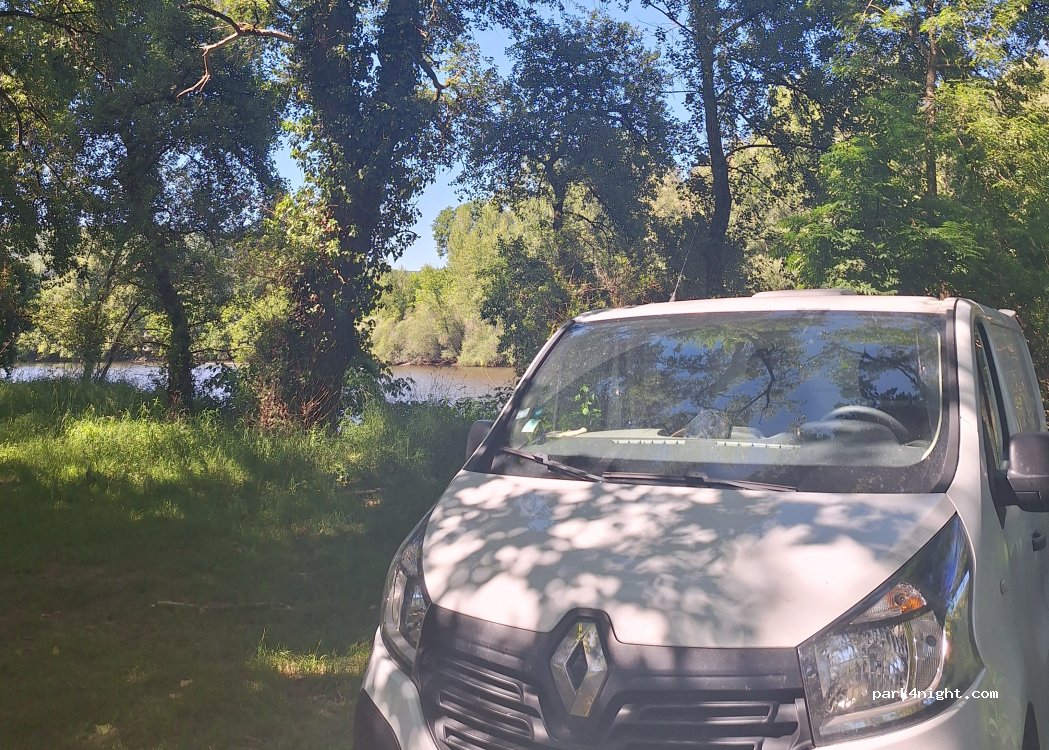 Lieu très paisible au bord de la rivière. Nous y avons passé une agréable nuit, en revanche il y a énormément de moustique le soir, prévoyez vos bougies à la citronnelle si vous souhaitez passer votre soirée en dehors de votre véhicule ☀️