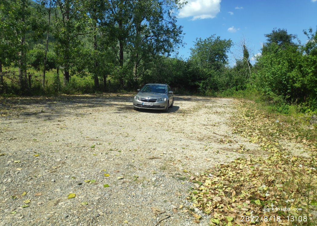 Hele scheve parkeerplaats. Het is er heel rustig maar wij zijn doorgereden omdat het niet vlak was. Als je zuinig bent met je camper zou ik het niet eens proberen. Enkele weg ernaartoe is heel smal met veel uitstekende takken van de bomen. Voor parkeren is het prima te doen, slapen niet aan te raden.