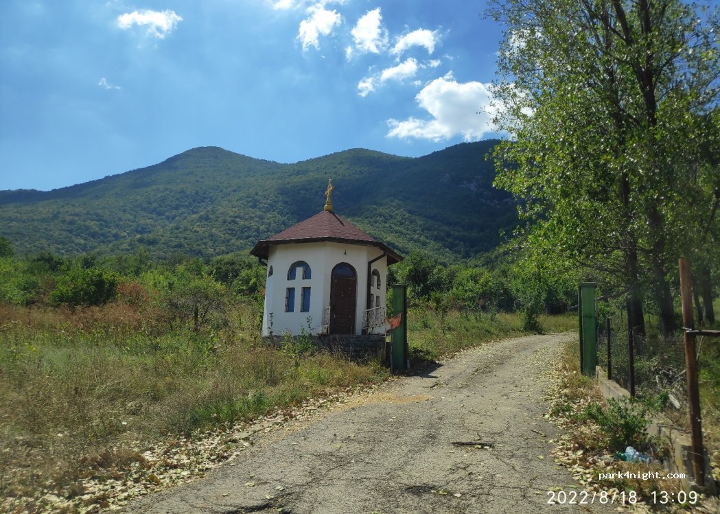 Petit parking juste avant le monastère. Bien pour une pause déjeuner, pas pour la nuit, beaucoup trop en pente.