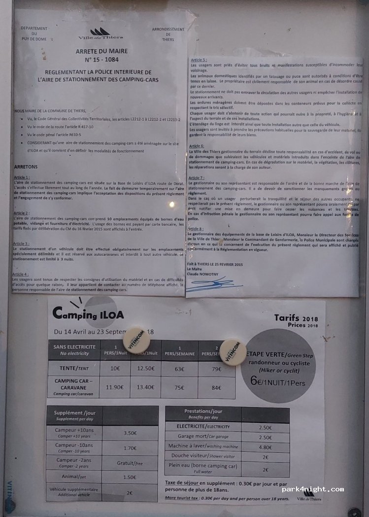 Endroit très agréable dans un parc très bien aménagé. Nuit très calme . Merci à la commune de Thiers pour l’accueil . Plein d’eau :2€