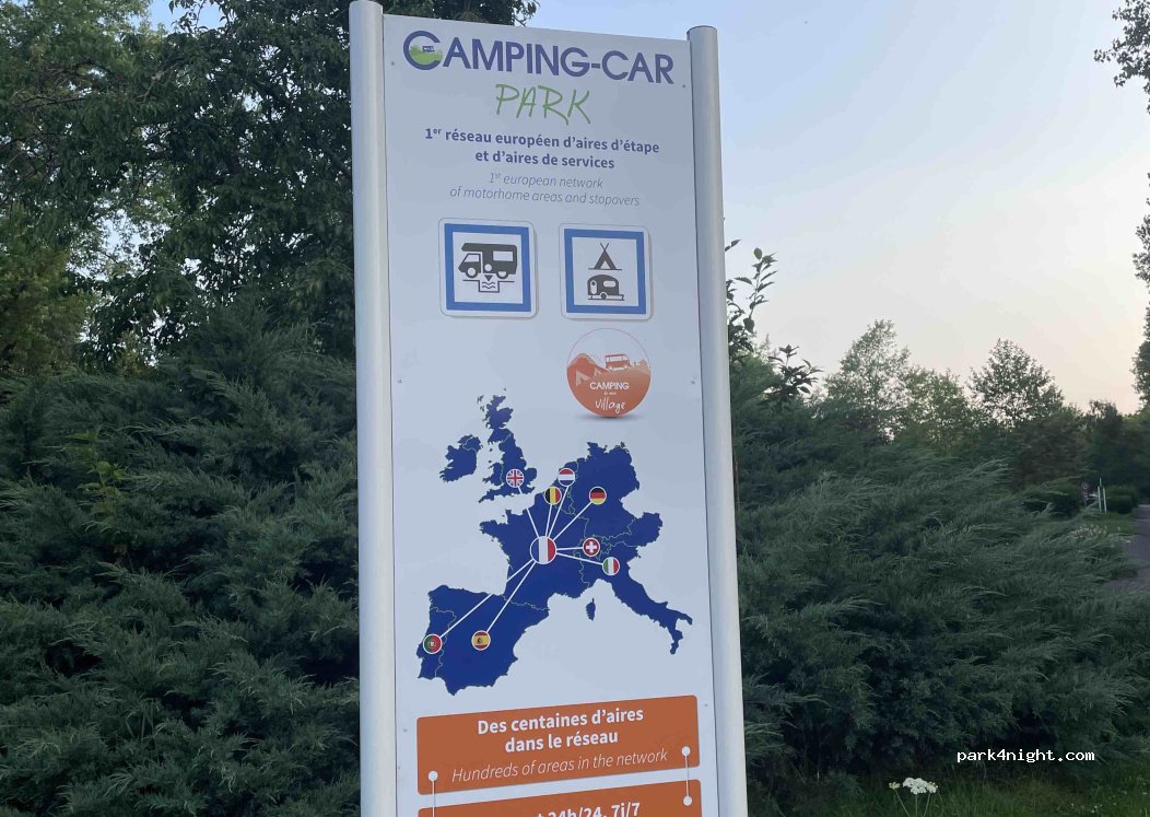 Excellent endroit pour un arrêt pour la nuit car tout près de l'autoroute. Très calme. Promenade autour du lac et centre aquatique à proximité. Les bornes ne sont pas fonctionnelles pour l'électricité et il n'y a pas d'eau aussi. Vidange eaux grises possible. Stationnement gratuit....