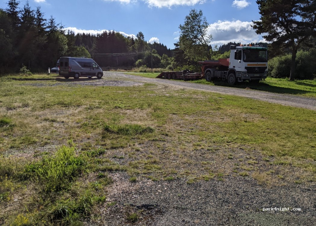 Small picnic area and parking, we spent a good night there, on the edge of a road with very little traffic, quite flat, a picnic table.