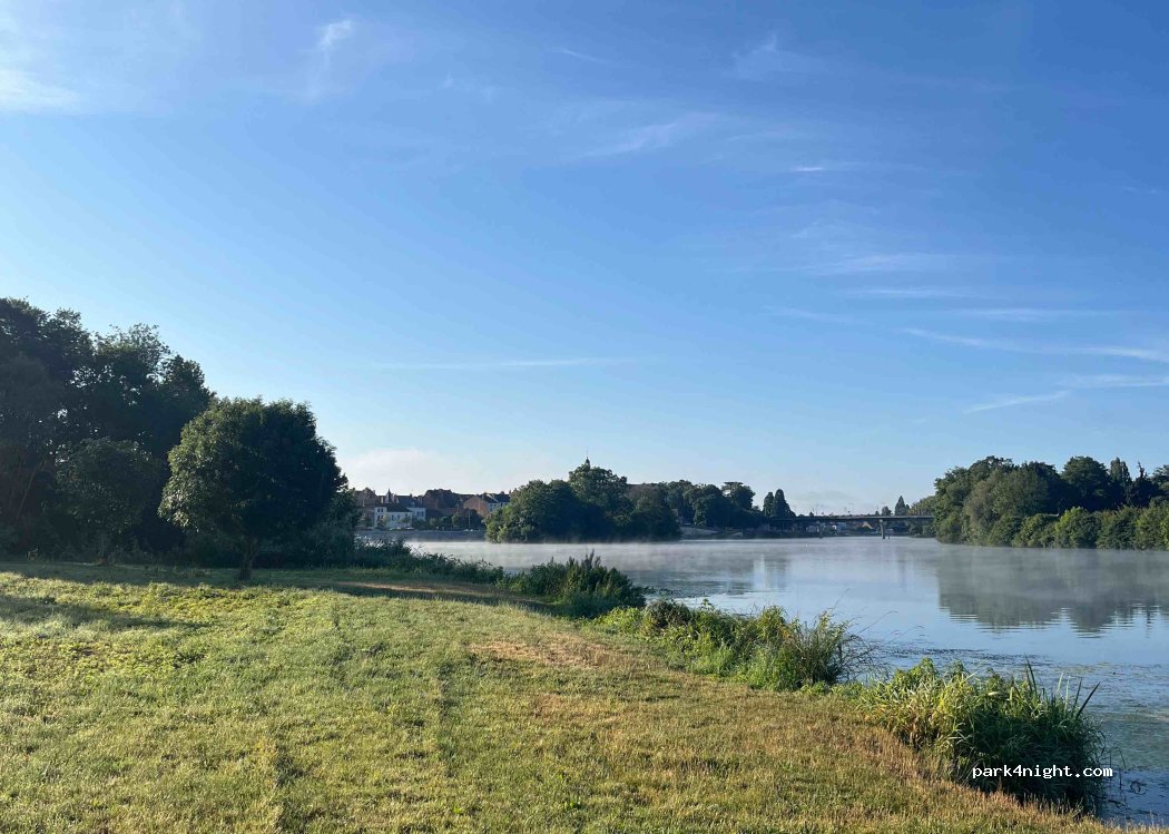 jolie spot. Nous avons continué un peu le long de la berge il y a plusieurs spots bien plus joli. Nous nous sommes arrêtés un peu plus loin avec 2 camionnettes et passé une super nuit au calme. Beaux spots de pêche et pourquoi pas de baignade. Je recommande vivement
