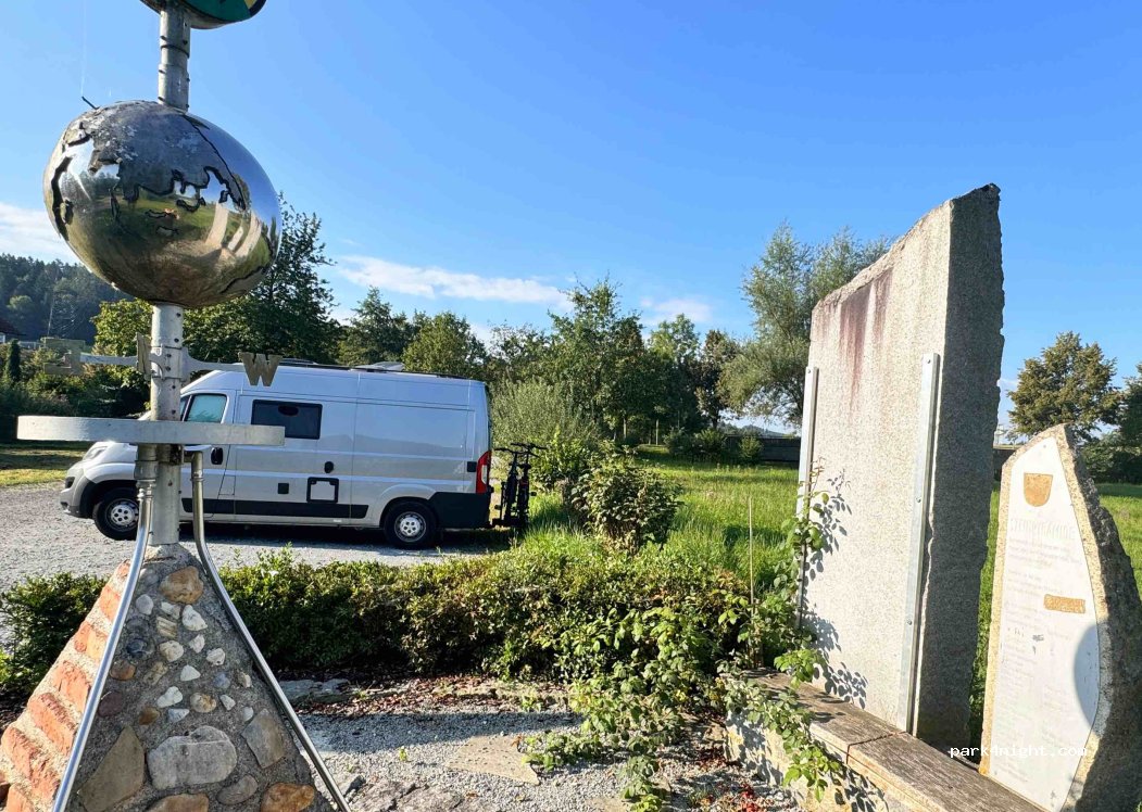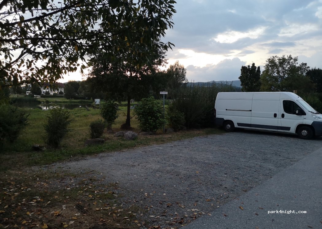 Wanderparkplatz direkt im Ort mit Picknicktisch. Am Teich gibt es auch eine Liege. Direkt an der Hauptstraße des Ortes, aber nicht all zu viel Verkehr.