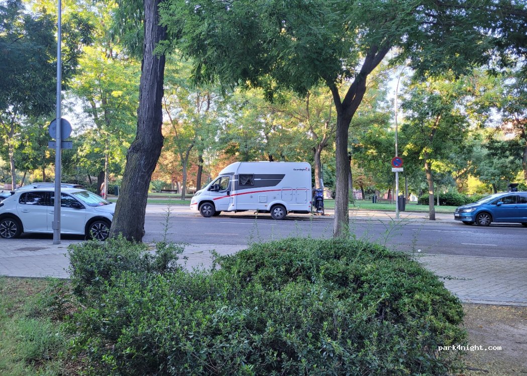 Perfect spot close to the centre of Madrid. We paid 0,50 cents per hour. Make sure to come early if you want a spot. The sign says; no parking for lorries and busses. No sign saying campers are not allowed.