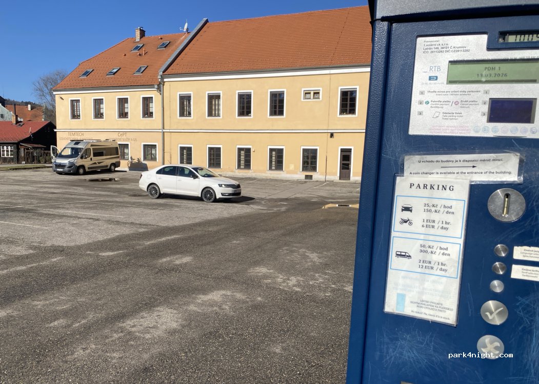 À 15-20 minutes à pied de la vieille ville et du château. À ce jour, il n’est plus gratuit. Paiement horodateur avec de la monnaie uniquement, 25 czk/h.