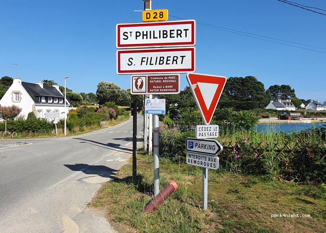 très belle vue, une vingtaine de places mais seulement celles du haut sont à plat. pas de commodités, à part tables de camping en bois à l ombre et poubelles. belle vue mer et dégustation possible de fruits de mer directement de chez l ostréiculteurs. Les viviers de St Phil. Très sympa et terrasse sur l eau. je recommande ! accès entrée de Saint Philibert sur la D28. interdit aux remorques.