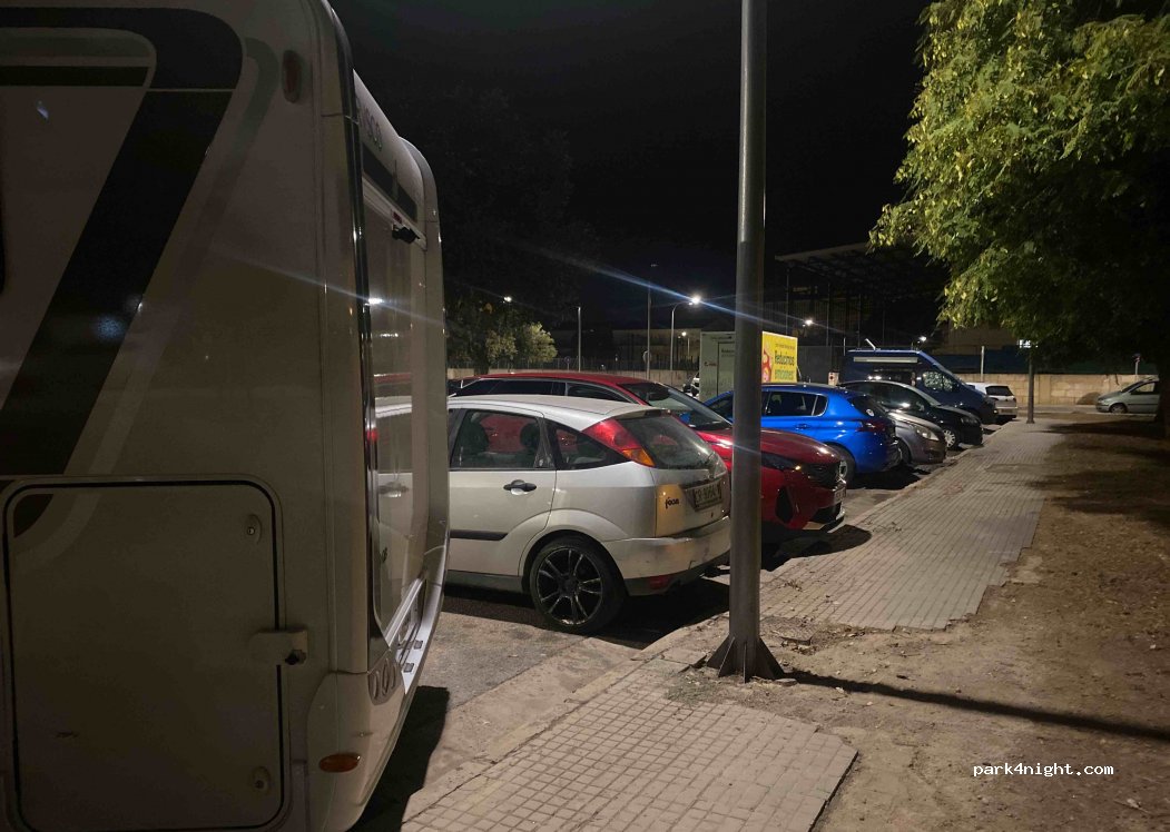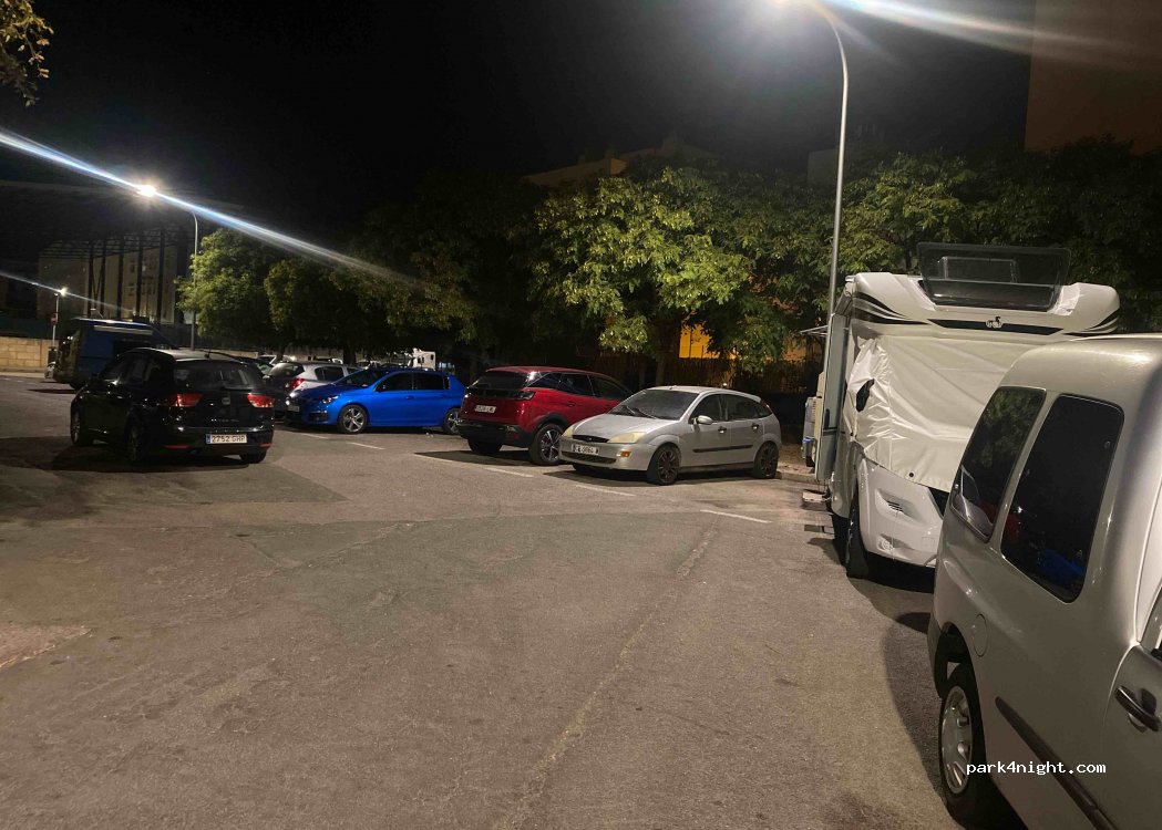 Parking seulement pour petit véhicules mais comme les espagnols se garent dans l’allée centrale je n’ai pu sortir avec mon jumper de 5,4m qu’après de nombreuses manœuvres en frôlant les autres véhicules mal garés . Donc je déconseille.