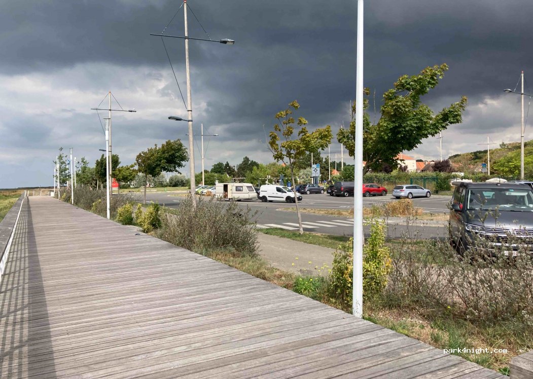 passé la nuit au calme belle vue sur l anse idéal pour aller au touquet à vélo barrière de hauteur mais levée à 4 mètres je recommande marché au poisson à 200 m et jolie musée de la marine à voir