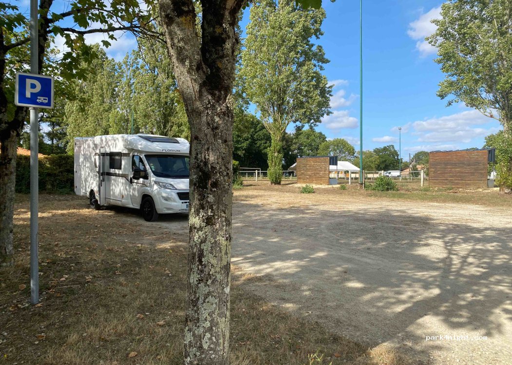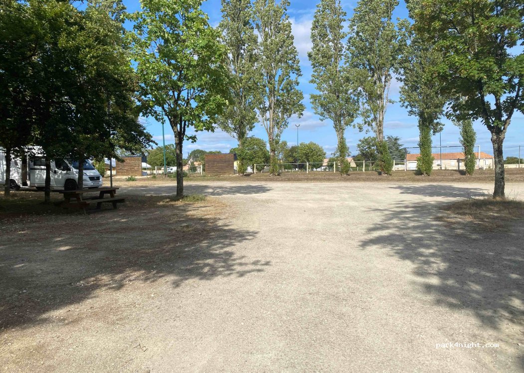 Très bien pour 1 nuit. Calme et au vert, entre le stade municipal, salle des fêtes et aire de jeux pour enfants. Réveil au son des oiseaux. Boulangerie juste à côté. Périt bémol : poubelle déborde et toilettes hors services. Très bien avec un chien qui peut se dégourdir les pattes sans danger.