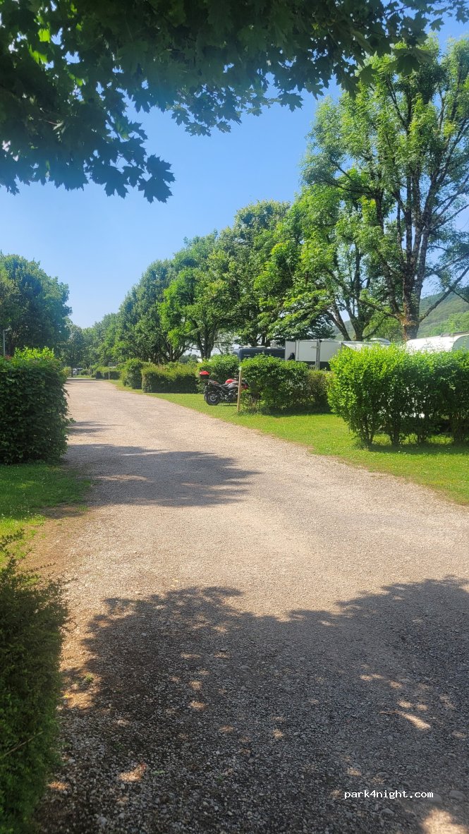 Sehr schöner CP. mit kleinem Swimmingpool und Gastronomie. Ruhig. Sanitäranlagen top modern. Klopapier (und Klobrillen) vorhanden! ein Van, eine Person mit Strom: 23,60 €. Ort selber gibt nicht viel her, aber die Aussichten auf die Ain und die Berge macht es wieder wett.