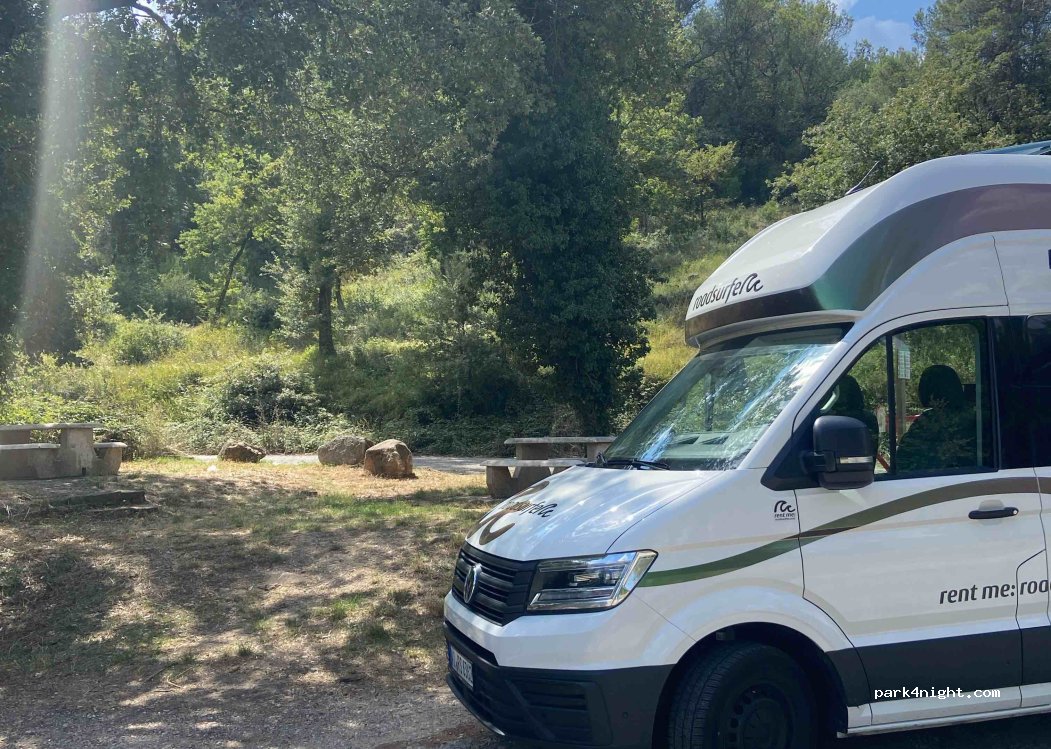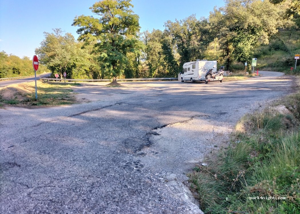 Nice car park with table and trash can, without service, unless the barrier is open, there is a tap in the grass 1.5m from the edge on the left as you go up, 150m from the car park. You can sleep but the noise from the road is a bit disturbing. There is enough space for several motorhomes.