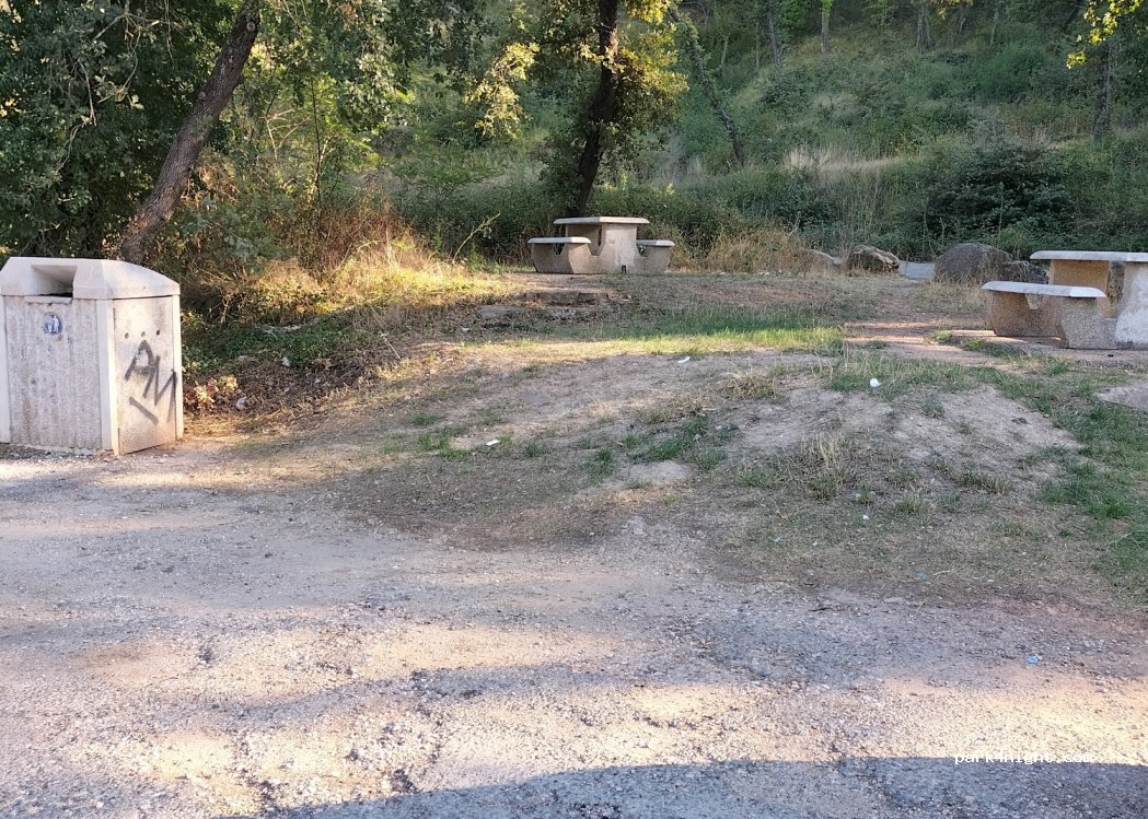 Schöner Parkplatz mit Tisch und Mülleimer, ohne Service, sofern die Schranke nicht geöffnet ist, gibt es einen Wasserhahn im Gras 1,5 m von der Kante links, wenn Sie nach oben gehen, 150 m vom Parkplatz entfernt. Sie können schlafen, aber der Straßenlärm stört etwas.Es gibt genug Platz für mehrere Wohnmobile.