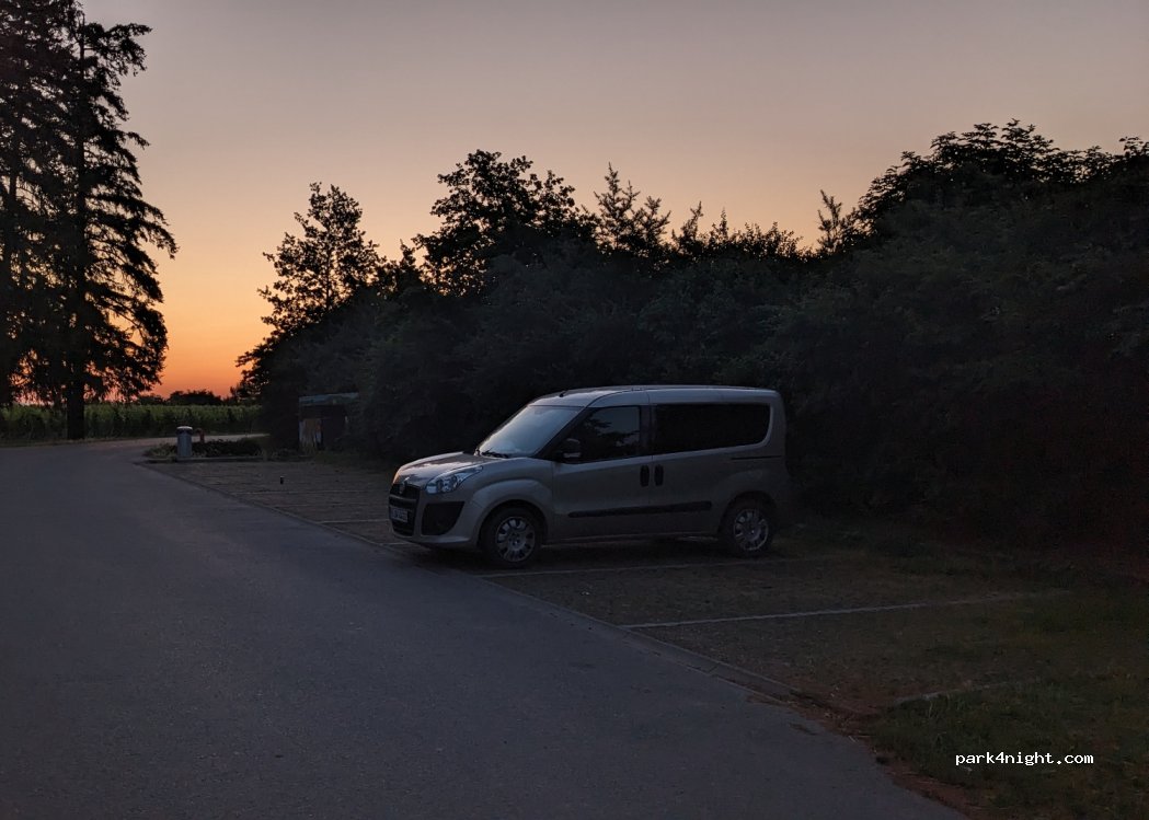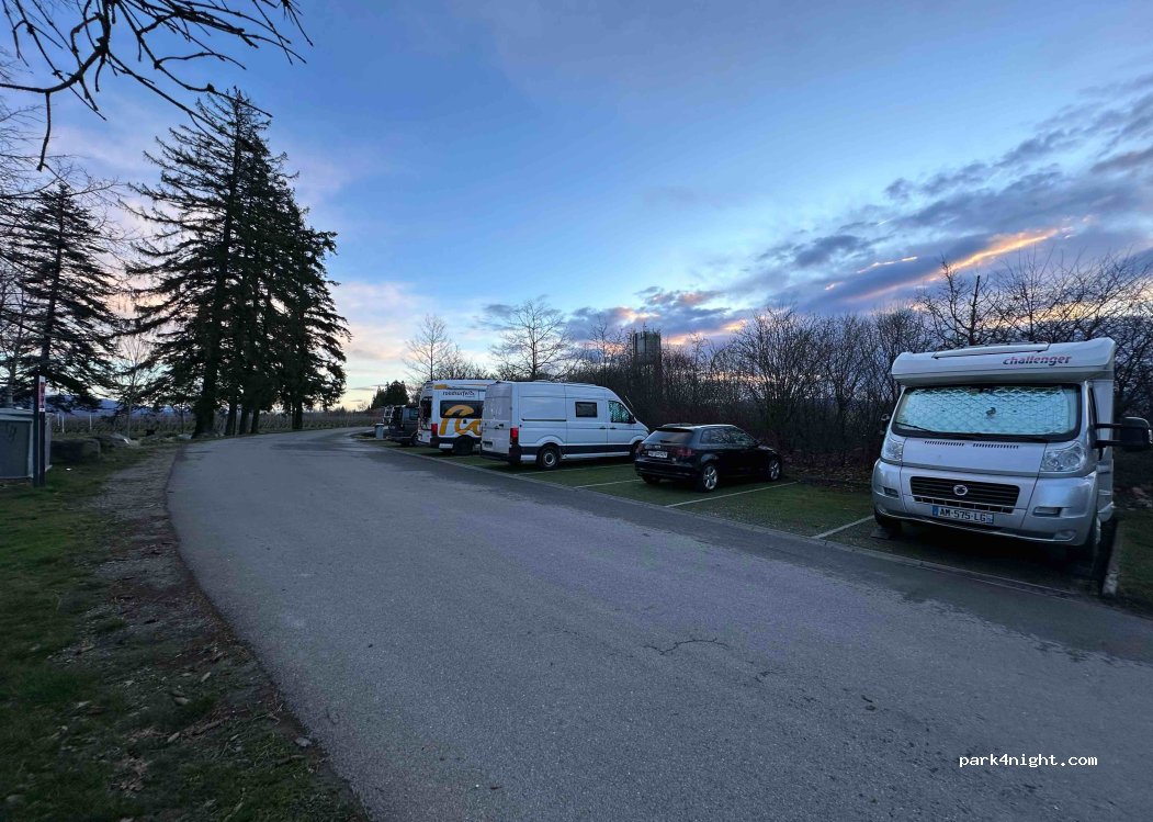 Belle vue sur le Jura, et une petite butte naturelle avec de beaux grand arbres. J'y ai passé quelques nuit sans soucis. Le matin il y'a souvent le passage de tracteurs. Ce lieu est particulièrement prisé le week-end par les picnics, et les promeneurs. Poubelles à disposition, accès à l'eau et toilettes. Parking pour une dizaines de places. Belle vue sur les vignes et la montagne.