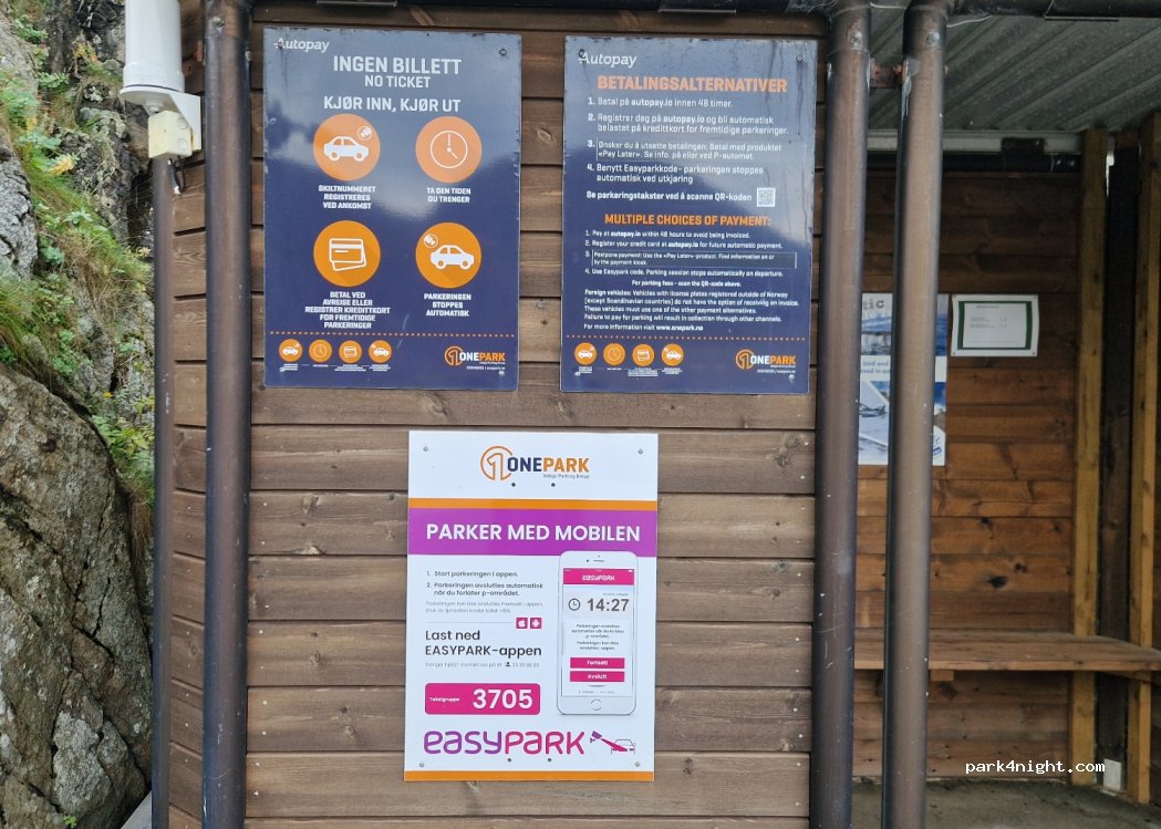 pro Stunde kostet es für Wohnmobile 60 NOK, für Pkws 30 Nok