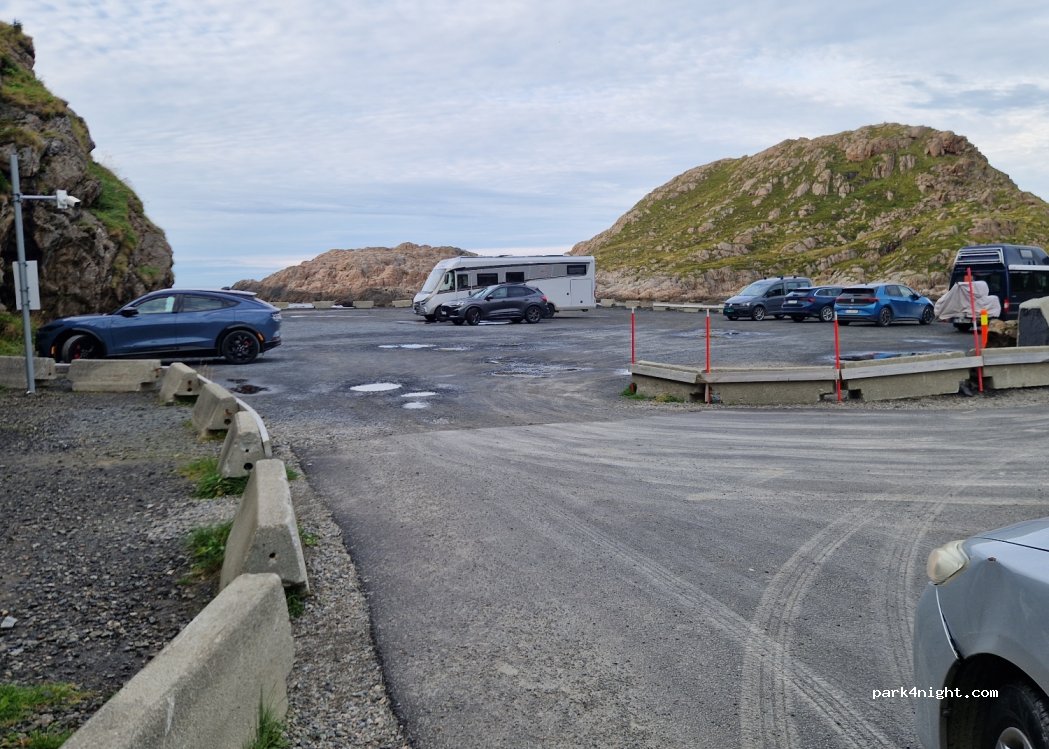 Parking payant (24€) les 24h via une application et carte bleue. Situé au bord de la mer endroit idéal pour visiter Nyktsumd Derrière une petite falaise le soleil est caché un peu tôt. Garez vous au fond à droite pour en profiter le plus longtemps. Magnifique soleil de minuit en ce mi- mai 2025.