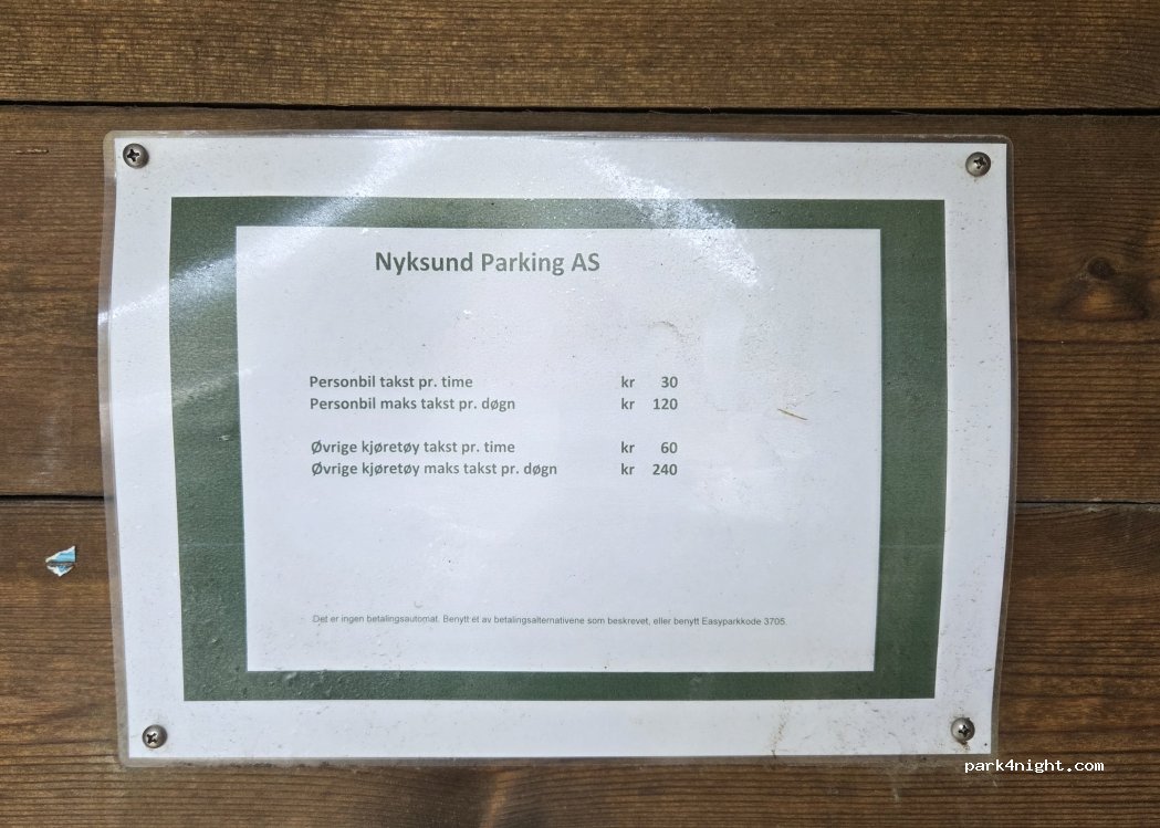 Pour les frais via easypark via lecture de plaque d'immatriculation avons payé 120 nok + 18 nok de frais soit 138 nok pour 19h30. Petit restaurant bien sympa avec serveuse qui parle Français, top.