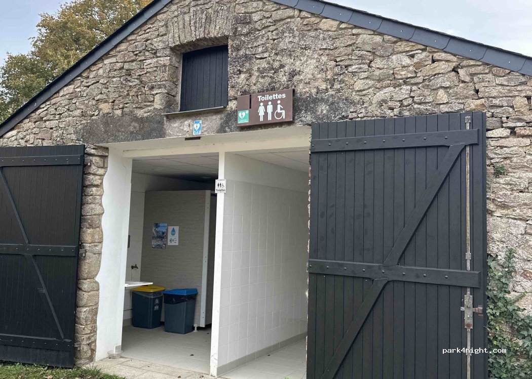 Super endroit ! Petit parking du château. Pas d’interdiction de stationner. Les sanitaires à côté de l’accueil sont restés ouverts la nuit. Très propres, avec papier, lavabo, savon et essuie mains. Merci beaucoup! Endroit à respecter ++.