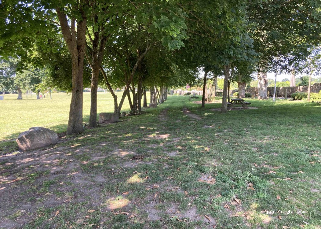 Perfect parking for visiting Dinan with large spaces to park. Free. Slightly sloping for those who would like to spend a night there.