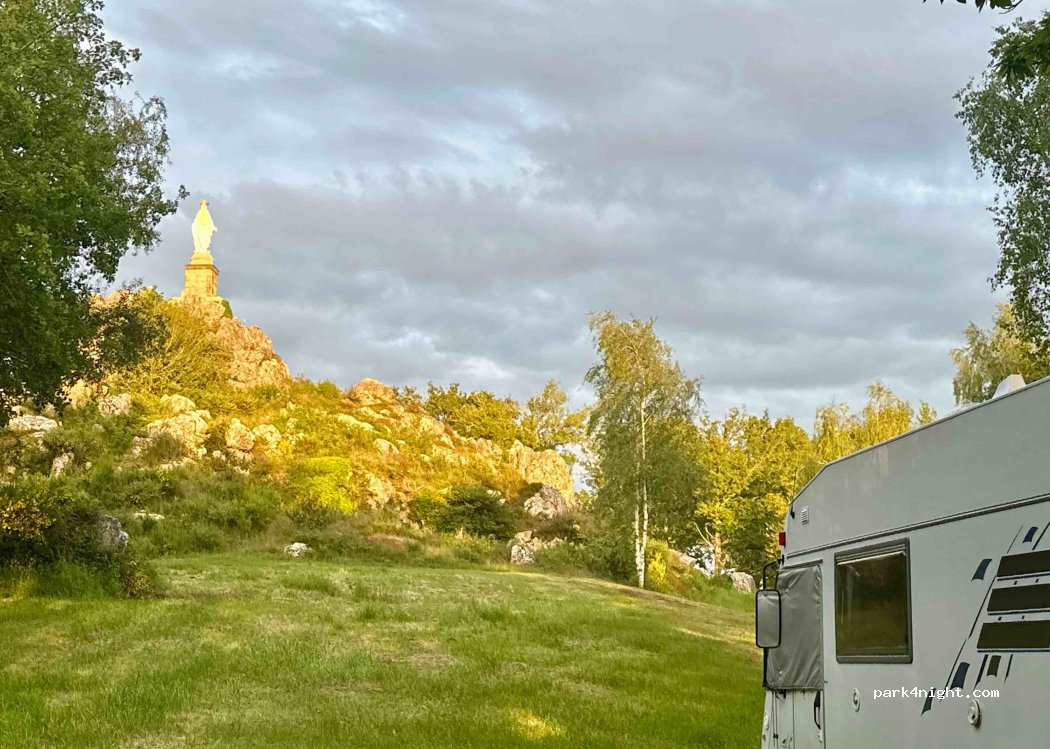 Bonjour à tous nous sommes arrivés en ces lieux et la surprise endroit idyllique super propre entretenu avec poubelles la Sainte vierge ainsi que la petite chapelle éclairé la nuit magnifique je recommande ce lieux calme pour passer une nuit ou deux nuit