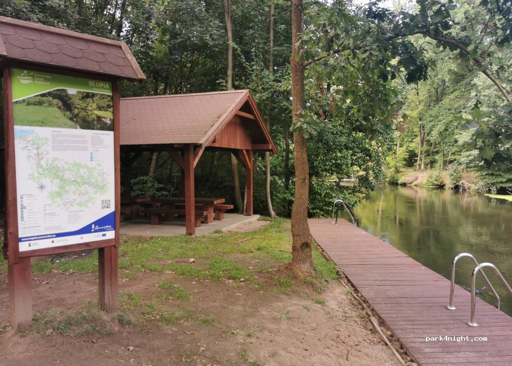 Canoe stop on the river Słupia. Good pleace to rest. Benches, shelter, campfire area.