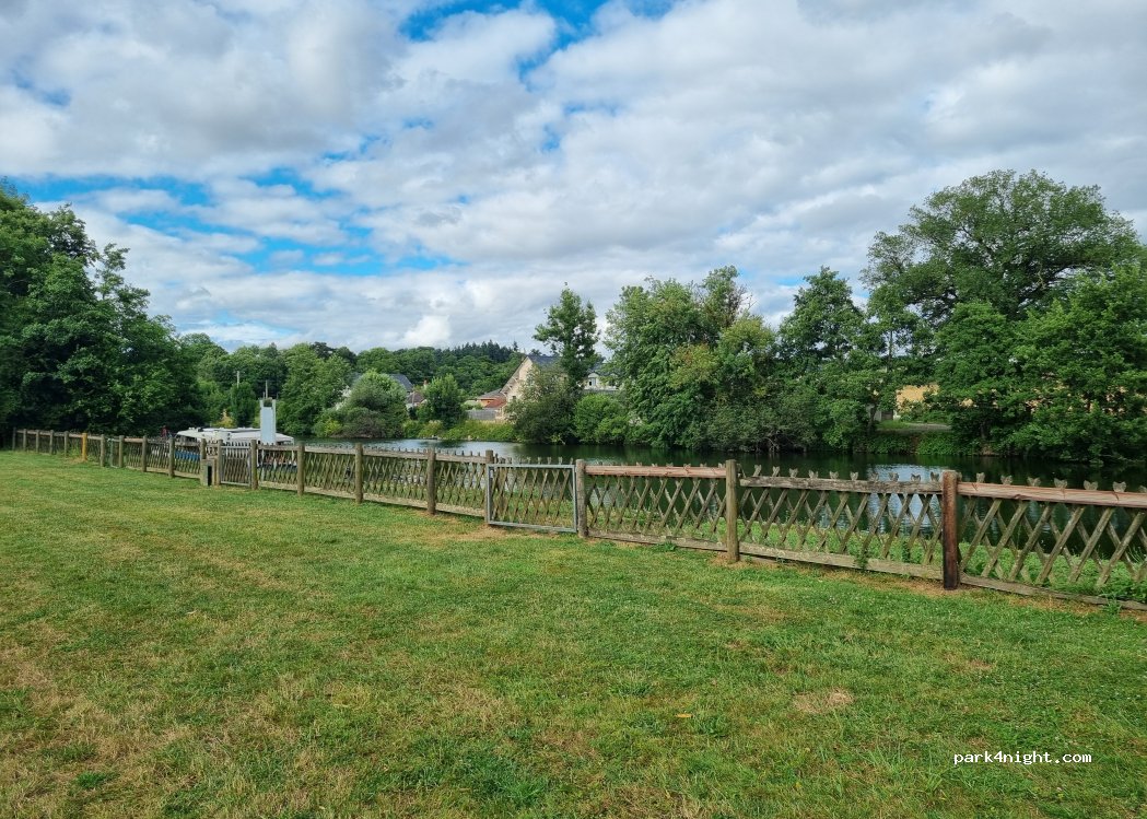 Bel emplacement ce jour devrait être fermé mais surprise ouvert avec tous les services eau et elec''. Un peu humide c'est l'époque, choisir des endroits stabilisés. Propre même ce jour tondu, proche de la Mayenne, balades. Merci à la commune.